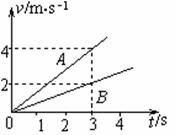 10.(2010·山东省实验中学三诊)如图所示为两个物体A和B在同一直线上沿同一方向同时做匀加速运动的v-t图线。已知在第3 s末两个物体在途中相