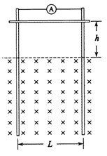 18.(2010·全国高考江苏卷)如图所示,两足够长的光滑金属导轨竖直放置,相距为L, 一理想电流表与两导轨相连,匀强磁场与导轨平面垂直。一质量为m、有效电阻为R的导体棒在距磁场上边界h处静止释放。导体棒进入磁场后,流经电流表的电流逐渐减小,最终稳定为I。整个运动过程中,导体棒与导轨接触良好,且始终保持水平,不计导轨的电阻。求: