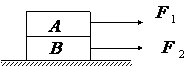 如图,长方体木块A、B质量相同,叠放在光滑水平地面上,在恒力F1、F2共同作用下,木块A、B相对静止并一起向右加速运动,已知F1>F2,关于B受到的摩擦力F,下列说法中正确的是