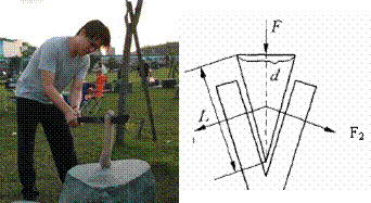 13.(8分)刀、斧、凿等切削工具的刃部叫做劈,图是用斧头劈木柴的示意图。劈的纵截面是一个等腰三角形,使用劈的时候,在劈背上加一力 F,这个力产生两个作用效果,使劈的两个侧面推压物体,把物体劈开。设劈背的宽度为d,劈的侧面长度为L,求劈的侧面推压物体的力。