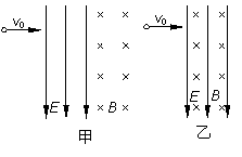 一重力不计的带电粒子一初速度v0先后穿过宽度相同且紧邻在一起的有明显边界的匀强电场E和匀强磁场B,如图甲所示,电场和磁场对粒子总共做功W1;若把电场和磁场正交叠加,如图乙所示,粒子仍以v0的初速度穿过叠加场区对粒子总共做功W2,比较W1 、W2的绝对值大小