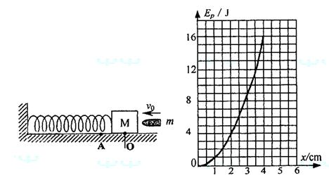 11.(19分)弹簧在不受作用力时所具有的长度称为自然长度,记为l0;弹簧受到拉力作用后会伸长,受到压力作用后会缩短,如果受力作用时的长度称为实际长度,记为l;而l与l0之差的绝对值称为形变量,记为x;x=|l-l0|。有一弹簧振子如图所示,放在光滑的水平面上,弹簧处于自然长度时M静止在O位置,一质量为m=20g的子弹,以一定的初速度v0射入质量为M=1980g的物块中,并留在其中一起压缩弹簧。振子在振动的整个过程中,弹簧的弹性势能随弹簧的形变量变化的关系如图所示。则
