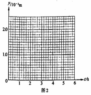 (2)设转盘按图1 中箭头方向匀速转动,每3s转一圈。取光束照在a 、b分界处时t=0 ,试在图2 给出的坐标纸上,画出电子到达屏S 上时,它离O点的距离y 随时间t 的变化图线(0-6s 间)。要求在y 轴上标出图线最高点与最低点的值。(不要求写出计算过程,只按画出的图线评分。)