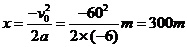 所以飞机12s内滑行的位移为10s内滑行的位移,由v2-v02=2ax可得![]()