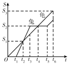 小李讲了一个龟兔赛跑的故事,按照小李讲的故事情节,兔子和乌龟的位移-时间图象如图所示,由图可知( )