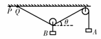 8.如图所示,A、B两物体的质量分别为mA、mB,且mA>mB,整个系统处于静止状态,滑轮的质量和一切摩擦均不计,如果绳一端由Q点缓慢地向左移到P点,整个系统重新平衡后,物体A的高度和两滑轮间的绳与水平方向的夹角兹 变化情况是 ( )