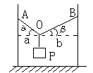 (6分)如图,两竖直固定杆间相距4m,轻绳系于两杆上的A、B两点,A、B间的绳长为5m.重G=80N的物体p用重力不计的光滑挂钩挂在绳上而静止,求绳中拉力T.