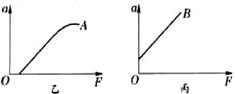 14.(6分)在“验证牛顿第二定律”的实验中,实验装置如图甲所示.有一位同学通过实验测量作出了图乙中的A图线, 另一位同学实验测出了如图丙中的B图线.试分析