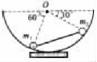 (4分)如图所示,一个半球形的碗放在桌面上,碗口水平,O是球心,碗的内表面光滑。一根轻质杆的两端固定有两个小球,质量分别是m1,m2.当它们静止时,m1、m2与球心的连线跟水平面分别成60°,30°角,则碗对两小球的弹力大小之比是