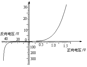 (4)该小组通过实验采集数据后描绘出了该半导体元件的伏安特性曲线,通过对比,与厂家提供的曲线基本吻合.如果将该半导体元件与一阻值R=50Ω的电阻串联,再接至电动势E=1.5V、内阻不计的电源上,该半导体元件处于正向导通状态.则此时该半导体元件的电功率为 W.