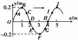 m/s,频率为 Hz;t =0时,图中“A、B、C、D、E、F、G、H、I、J”各质点中,向y轴正方向运动的速率最大的质点