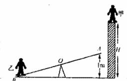 13.(13分)杂技演员甲的质量为M=80kg,乙的质量为m=60kg。跳板轴间光滑,质量不计。甲、乙一起表演节目。如下图所示,开始时,乙站在B端,A端离地面1m,且OA=OB。甲先从离地面H=6m的高处自由跳下落在A端。当A端落地时,乙在B端恰好被弹起。假设甲碰到A端时,由于甲的技艺高超,没有能量损失。分析过程假定甲、乙可看做质点。