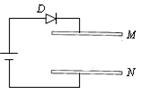 如图,D为一理想二极管(正向电阻为0,反向电阻无穷大),平行板电容器通过二极管与电动势不变的电源相连,下列是有关极板上的电量Q、极板间的电场强度E随板间距离变化的说法:①板间距离变小,Q增大;②板间距离变小,E增大;③板间距离变大,Q减小;④板间距离变大,E不变。其中正确的是-----------------------------------------------( )