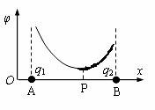 9、两电荷量分别为q1和q2的点电荷放在x轴上的A、B两点,两电荷连线上各点电势φ随x变化的关系图线如图所示,其中P点电势最低,且AP>BP,则-----------------------------( )
