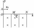 17. 如图所示,直角坐标系xOy位于竖直平面内,在水平的x轴下方存在匀强磁场和匀强电场,磁场的磁感应强度为B,方向垂直xOy平面向里,电场线平行于y轴.一质量为m、电荷量为q的带正电的小球,从y轴上的A点水平向右抛出,经x轴上的M点进入电场和磁场,恰能做匀速圆周运动, 从x轴上的N点第一次离开电场和磁场,MN之间的距离为L,小球过M点时的速度方向与x轴正方向夹角为θ.不计空气阻力,重力加速度为g,求: