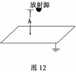 18. 在场强为E=100 V/m的竖直向下的匀强电场中有一块水平放置的足够大的接地金属板,在金属板的正上方,高为h=0.8 m处有一个小的放射源放在一端开口的铅盒内,如图12所示.放射源以v0=200 m/s的初速度向水平面以下各个方向均匀地释放质量为m=2×10-15 kg、电荷量为q=+10-12 C的带电粒子.粒子最后落在金属板上.不计粒子重力,试求:
