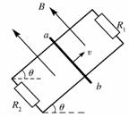 11.如图,连接两个定值电阻的平行金属导轨与水平面成θ角,R1 = R2 = 2R,匀强磁场垂直穿过导轨平面。有一导体棒ab质量为m,棒的电阻也为2R,棒与导轨之间的动摩擦因数为μ。导体棒ab沿导轨向上滑动,当上滑的速度为v时,定值电阻R2消耗的电功率为P,下列正确的是 ( )