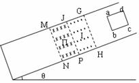 12.如图,在倾角为θ的光滑斜面上,存在着两个磁感应强度大小为B的匀强磁场,磁场的宽度MJ和JG均为L,一个质量为m、电阻为R、边长也为L的正方形导线框,由静止开始沿斜面下滑,当ab边刚越过GH进入磁场Ⅰ区时,恰好以速度 v1做匀速直线运动;当ab边下滑到JP与MN的中间位置时,线框又恰好以速度v2做匀速直线运动,从ab进入GH到MN与JP的中间位置的过程中,线框的机械能减少量为△E,重力对线框做功的绝对值为W1,安培力对线框做功的绝对值为W2,下列说法中正确的有 ( )