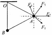 花板上的同一点O,并用第三根细线连接A、B