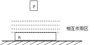 16、(16分)如图所示,P为位于某一高度处的质量为m的小物块(可视为质点),B为位于水平地面上的质量为M的特殊长平板,m/M=1/10,平板B与地面间的动摩擦因数μ=0.020。在平板的表面上方,存在一定厚度的“相互作用区域”,如图中划虚线的部分,当物块P进入相互作用区时,B便有竖直向上的恒力F作用于P,已知F=kmg,k=51,F对P的作用刚好使P不与B的上表面接触;在水平方向上P、B之间没有相互作用力。已知物块P开始下落的时刻,平板B向右的速度为v0=10m/s,P从开始下落到刚到达“相互作用区域”所经历的时间为t0=2.0s。设B板足够长,取重力加速度g=10m/s2,不计空气阻力。求: