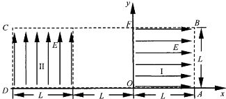 17.(16分)如图所示为研究电子枪中电子在电场中运动的简化模型示意图。在Oxy平面的ABCD区域内,存在两个场强大小均为E的匀强电场I和II,两电场的边界均是边长为L的正方形(不计电子所受重力)。