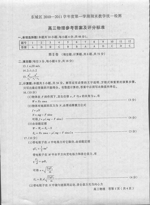 16.(10分)如图所示,用恒力F使一个质量为m的物体由静止开始沿水平地面移动的位移为