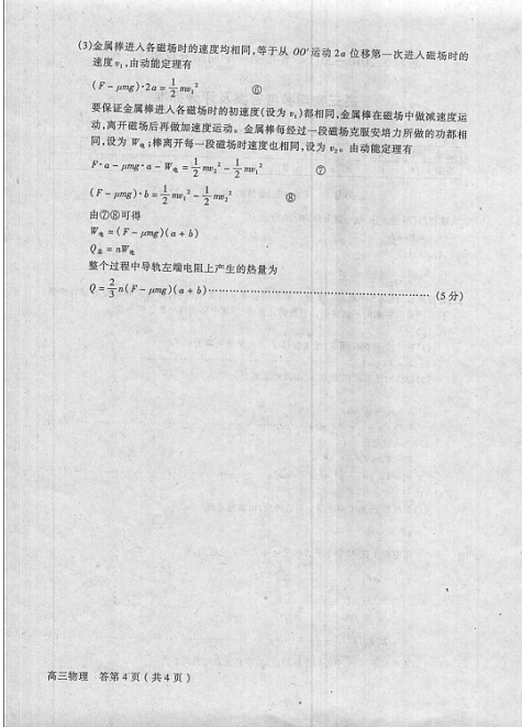 (3)若金属棒初速度为零,现对其施以水平向右的恒定拉力F,使棒进入各磁场的速度都相同,求金属棒从OO’开始运动到刚离开第n段磁场整个过程中导轨左端电阻上产生的热量。