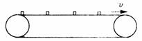 运动,每隔时间T轻轻放上相同的物块,当物块与传送带相对静止后,相邻两物块的间距大小 ( )