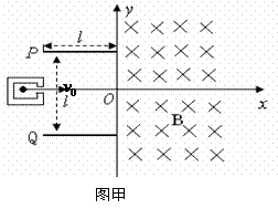 16.(17分) 如图甲所示,建立Oxy坐标系,两平行极板P、Q垂直于y轴且关于x轴对称,极板长度和板间距均为l,第一四象限有磁场,方向垂直于Oxy平面向里。位于极板左侧的粒子源沿x轴间右连接发射质量为m、电量为+q、速度相同、重力不计的带电粒子在0~3t0时间内两板间加上如图乙所示的电压(不考虑极边缘的影响)。