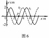 一列横波在t1和t2时刻的波形分别如图中的实线和虚线所示,已知波的传播速度是2.0 m/s。( )