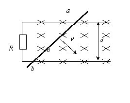 如图1所示,平行导轨间距为d,一端跨接一个电阻为R,匀强磁场的磁感强度为B,方向与导轨所在平面垂直。一根足够长的金属棒与导轨成θ角放置,金属棒与导轨的电阻不计。当金属棒沿垂直于棒的方向以速度v滑行时,通过电阻R的电流强度是( )