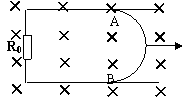 9.如图,一个半径为L的半圆形硬导体AB以速度v,在水平U型框架上匀速滑动,匀强磁场的磁感应强度为B,回路电阻为R0 ,半圆形硬导体AB的电阻为r,其余电阻不计,则半圆形导体AB切割磁感线产生感应电动势的大小及AB之间的电势差分别为