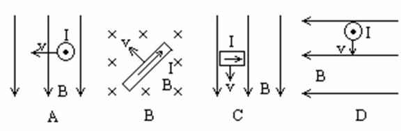 图中的四个图分别表示匀强磁场的磁感应强度B,闭合电路中一部分直导线的运动速度v和电路中产生的感应电流I的相互关系,其中正确是