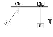 23.如图所示,在光滑水平轨道上有一小车质量为M2 =2KG它下面用长为L=2米的绳系一质量为M1=1KG砂袋,今有一水平射来的质量为m=1KG的小球,小球射来后与砂袋粘在一起而与砂袋一起摆过一角度θ=60度。不计悬线质量,试求小球射入砂袋时的速度V0多大?