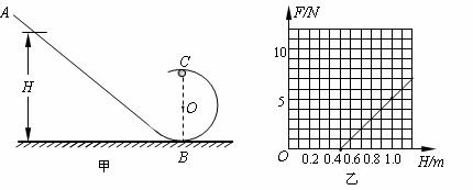 测出小球经过圆轨道最高点C时对轨道的压力为F,并得到如图乙所示的压力F随高度H的变化关系图象.(小球在轨道连接处无机械能损失,