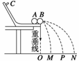(4分)用半径相同的两小球A、B的碰撞验证动量守恒定律,实验装置示意如图所示,斜槽与水平槽圆滑连接.实验时先不放B球,使A球从斜槽上某一固定点C由静止滚下,落到位于水平地面的记录纸上留下痕迹.再把B球静置于水平槽前端边缘处,让A球仍从C处由静止滚下,A球和B球碰撞后分别落在记录纸上留下各自的痕迹.记录纸上的O点是重垂线所指的位置,若测得各落点痕迹到O的距离: