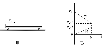 16.(12分)如图甲所示,光滑水平面上停放着一辆上表面粗糙的平板车,一小金属块以水平速度v0滑到平板车上,在0~t0时间内它们的速度随时间变化的图象如图乙所示,求:
