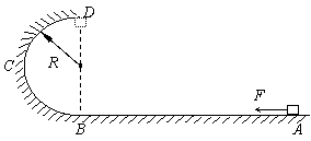 17.(14分)如图所示,AB为水平轨道,A、B间距离s=2.25m,BCD是半径为R=0.40m的竖直半圆形轨道,B为两轨道的连接点,D为轨道的最高点。一小物块质量为m=1.2kg,它与水平轨道和半圆形轨道间的动摩擦因数均为μ=0.20。小物块在F=12N的水平力作用下从A点由静止开始运动,到达B点时撤去力F,小物块刚好能到达D点,g取10m/s2,试求: