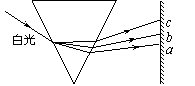 ⑴(5分)如图所示,一细束白光通过三棱镜折射后分为各种单色光,取其中a、b、c三种色光,并同时做如下实验:①让这三种单色光分别通过同一双缝干涉实验装置在光屏上产生干涉条纹(双缝间距和缝屏间距均不变);②让这三种单色光分别从水射向空气发生全反射;③让这三种单色光分别垂直投射到一条直光导纤维的端面上,下列说法中正确的是: