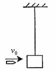 ⑵(10分)一根轻绳长1.6m,一端系在固定支架上,另一端悬挂一个质量为1kg的砂箱,砂箱处于静止。质量为10g的子弹以水平速度v0=50m/s打入砂箱,其后以v=10m/s速度从砂箱穿出。g取10m/s2。求: