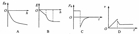 9.运动员从悬停在空中的直升机上跳伞,伞打开前可看作是自由落体运动,开伞后减速下降,最后匀速下落。如果用h表示下落高度、t表示下落的时间、F表示人受到的合外力、E表示人的机械能、Ep表示人的重力势能、v表示人下落的速度。在整个过程中,下列图象可能符合事实的是