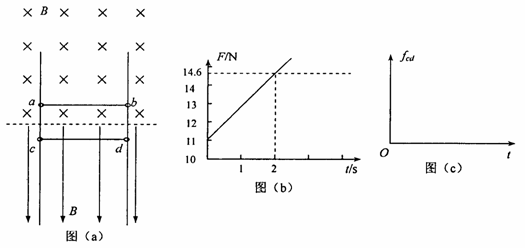 (3)判断cd棒将做怎样的运动,求出cd棒达到最大速度所需的时间t0,并在图(c)中定性画出cd棒所受摩擦力