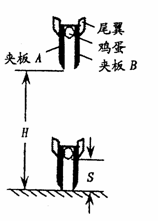 (10分)“头脑风暴法”是上个世纪风靡美国的一种培养学生创新思维能力的方法,某学校的一个“头脑风暴实验研究小组”,以“保护鸡蛋”为题,要求制作-个装置:让鸡蛋从高处落到地面而不被摔坏;鸡蛋要不被摔坏,直接撞击地面的速度最大不能超过1.5m/s。现有一位同学设计了如图13所示的-个装置来保护鸡蛋,用A、B两块较粗糙的夹板夹住鸡蛋,鸡蛋夹放的位置离装置下端的距离s=0.45m,A、B夹板与鸡蛋之间的摩擦力都为鸡蛋重力的5倍,现将该装置从距地面某一高处自由落下,装置着地时间短且保持竖直不被弹起,g=10m/s2。