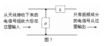 1、.在收音机电路中,经天线接收下来的电信号既有高频成分又有低频成分,经放大后送到下一级,需要把高频成分和低频成分分开,只让低频成分输入下一级,如果采用如图7所示的电路,图中虚线框a和b内只用一个电容器或电感器,那么: