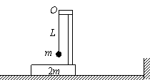 (20分)附加题如图所示,质量不计且足够长的倒L型支架下端固定在质量为2m的木板上,在其上端O处系一长为L的轻绳,绳的下端系一质量为m的小球,小球可视为质点。整个装置在光滑的水平面上以速度v0向右做匀速直线运动,水平面的右端为一矮墙。(重力加速度为g)