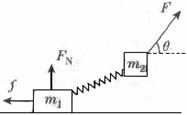 的作用下一起沿水平方向做匀速直线运动(m1在地面,m2在空中),力F与水平方向成θ角。则m1所受支持力FN和摩擦力f正确的是: