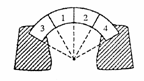 将四块相同的坚固石块垒成圆弧形的石拱,其中第3、4块固定在地基上,第l、2块间的接触面是竖直的,每块石块的两个侧面间所夹的圆心角为300.假定石块间的摩擦力可以忽略不计,则第1、2块石块间的作用力和第1、3块石块间的作用力的大小之比为