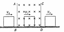 20.如图所示,在光滑绝缘的水平面的上方存在有水平方向的匀强磁场,AB、CD是磁场区域的边界.一个正方形的闭合导线框以水平速度v。冲向磁场区域,当它全部进入磁场区域后速度变为v1,当它全部冲出磁场区域后速度变为v2.比较导线框进入磁场的过程和离开磁场的过程,下列说法正确的是