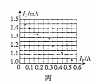 (3)如上图丙所示,是某位同学根据他所设计的实验测得的六组数据在I1-I2图像上所描出的点(I1为电流表G的示数,I2为电流表A的示数).请你在图上画出图线,并由图线求出电池的电动势E=________V,内电阻r=_______Ω.