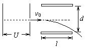 d =1.0cm,板长l =5.0cm,电子的质量m=0.9×10-30kg,电子的电荷量e=1.6×10-19C,下板为正极。则(1)电子离开加速电场时,速度v0的大小是多少?